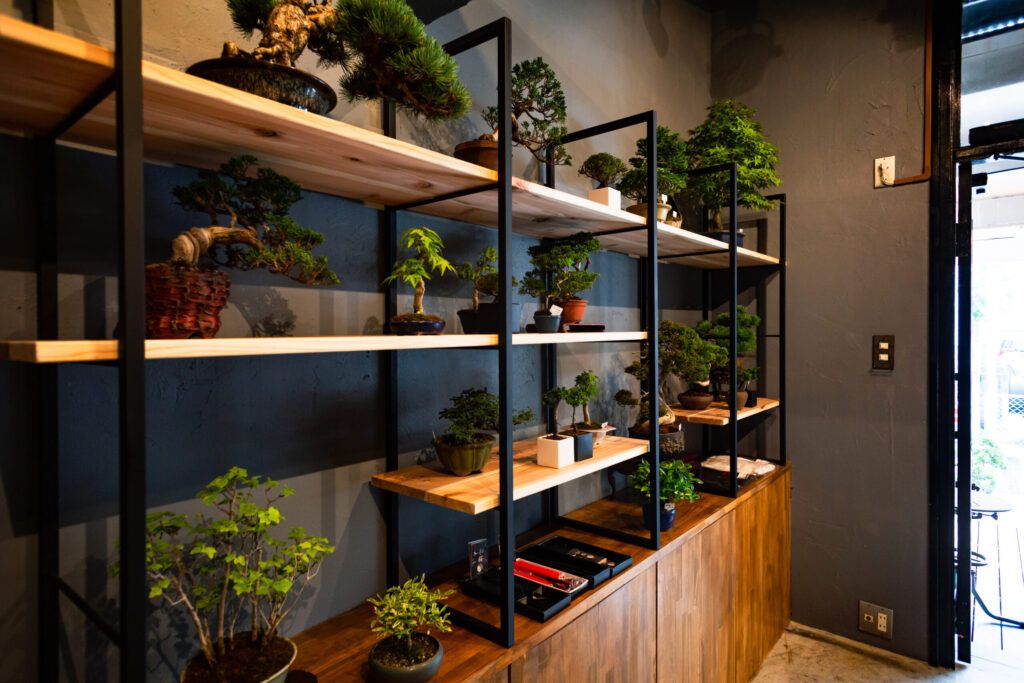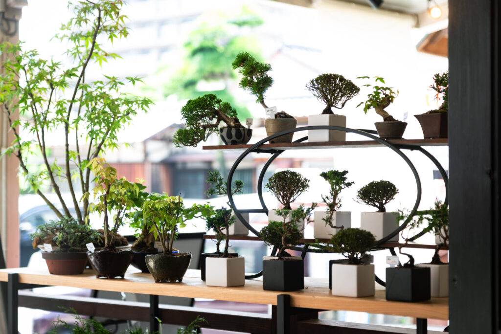 福岡市の中心、天神から徒歩圏内のアクセスしやすい場所に、現代的な盆栽ショップを運営